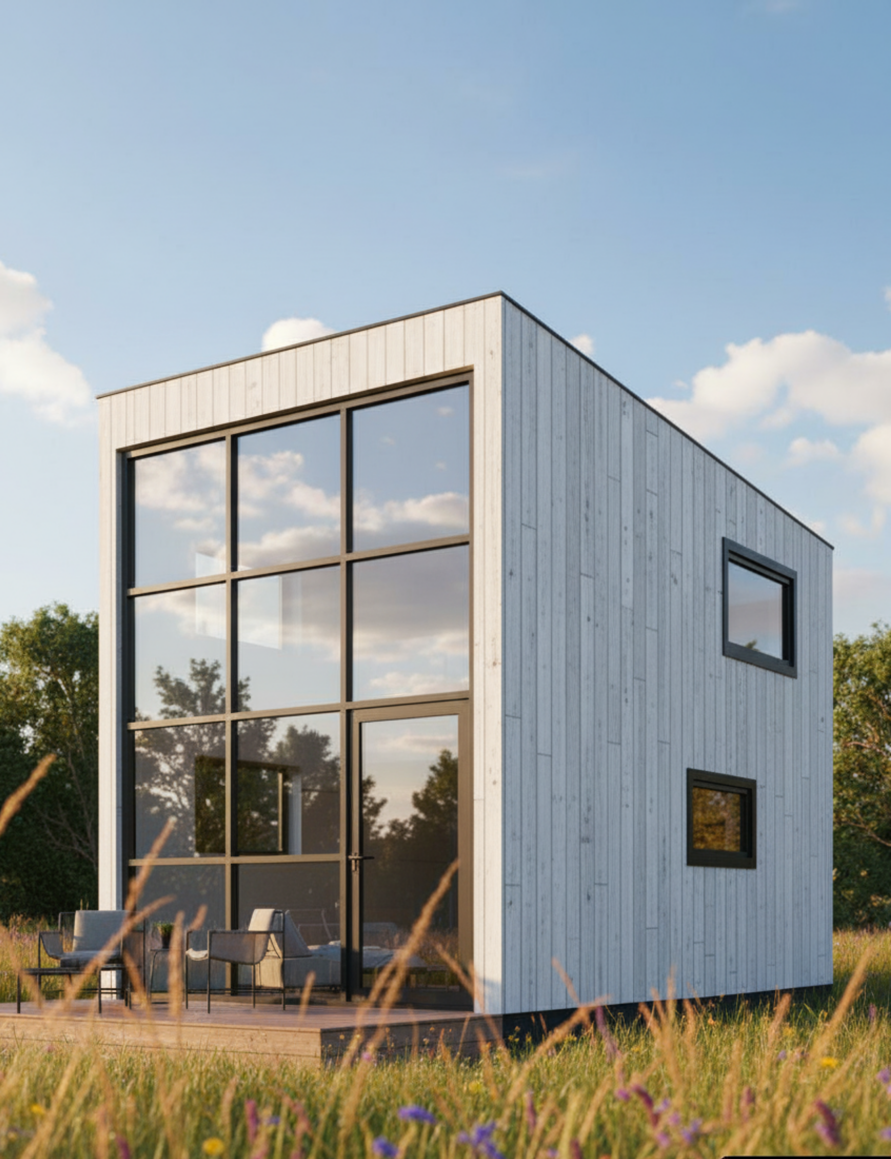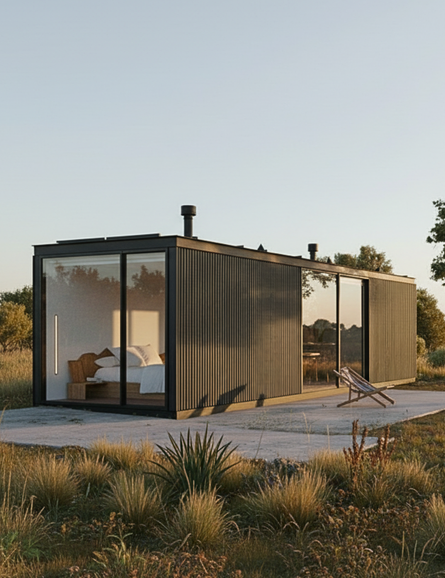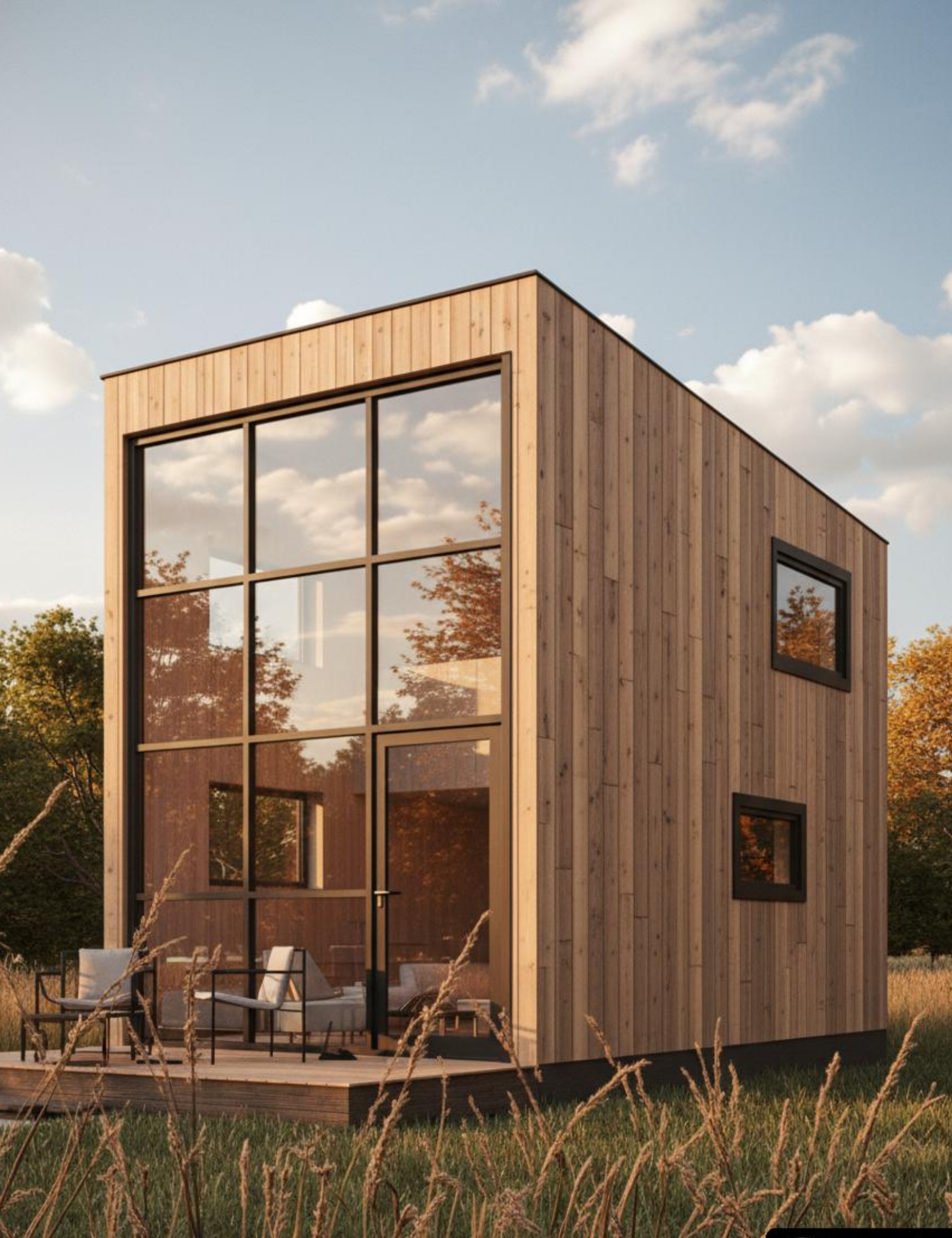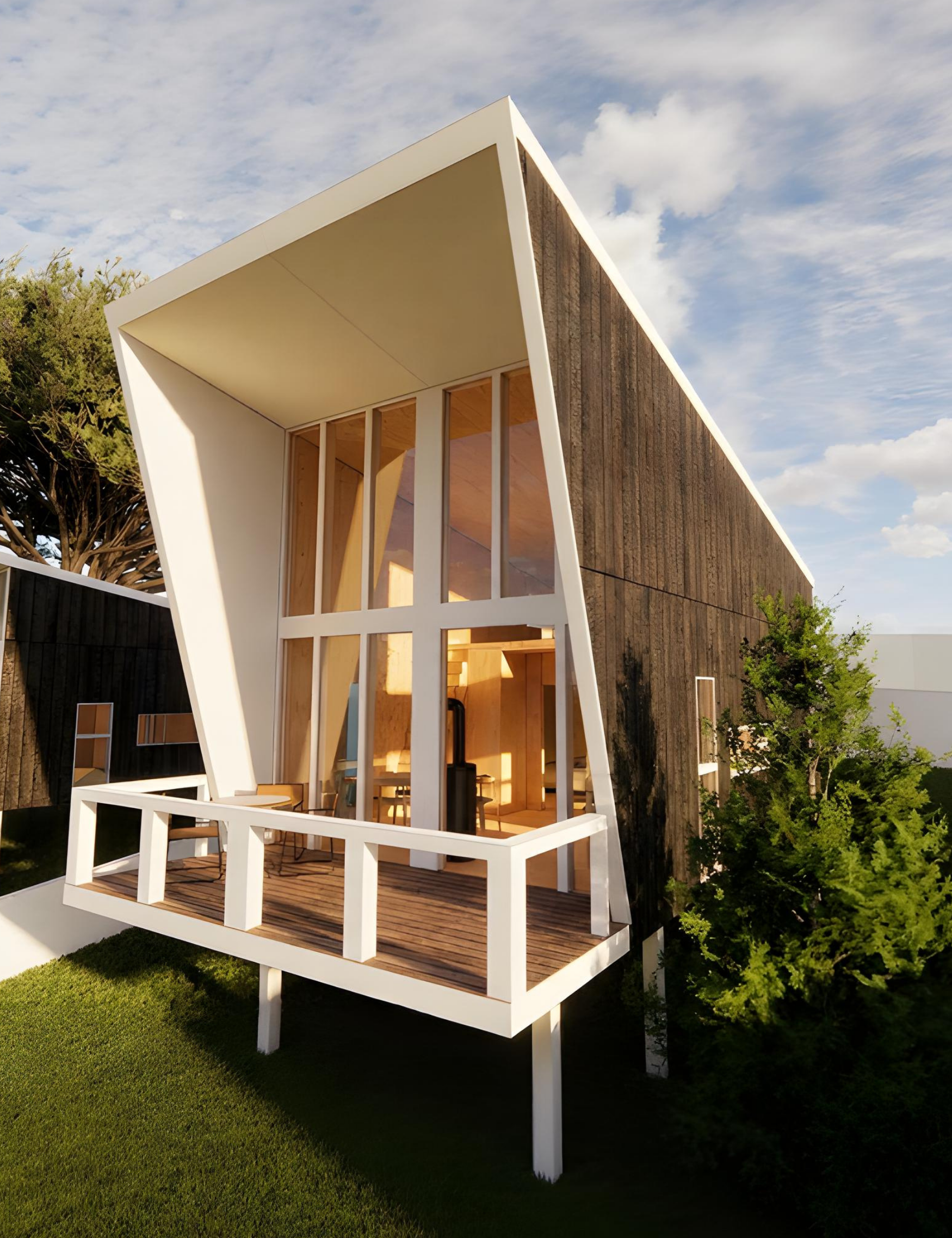 Vivienda completa compacta orientado a vivienda de de fin de semana esporádica, modulo adicional de vivienda principal, casa de invitados y otras opciones de habitabilidad ocasional. También, es una opción adecuada para cuando se prevé aumentar el tamaño de la vivienda con más módulos a futuro.