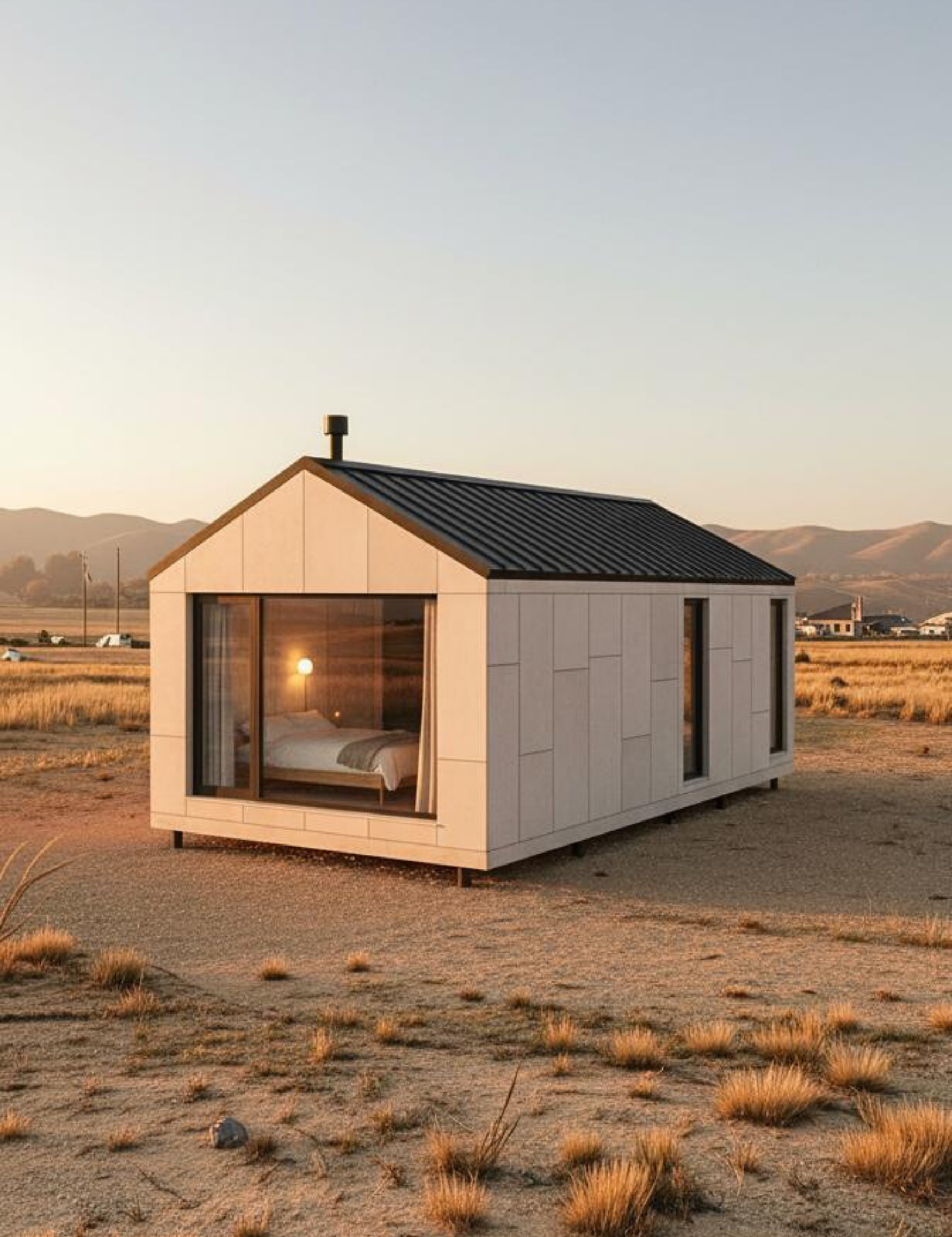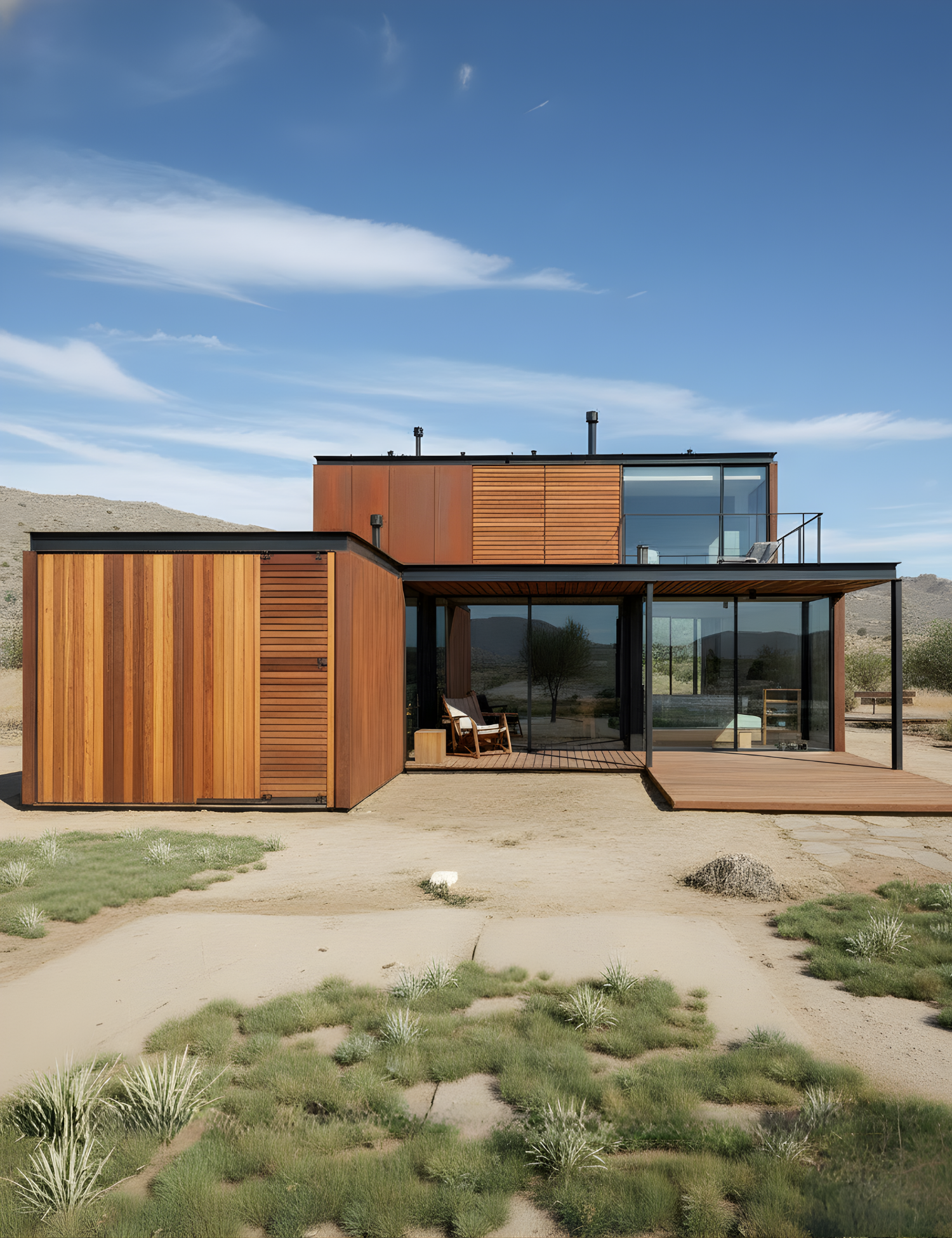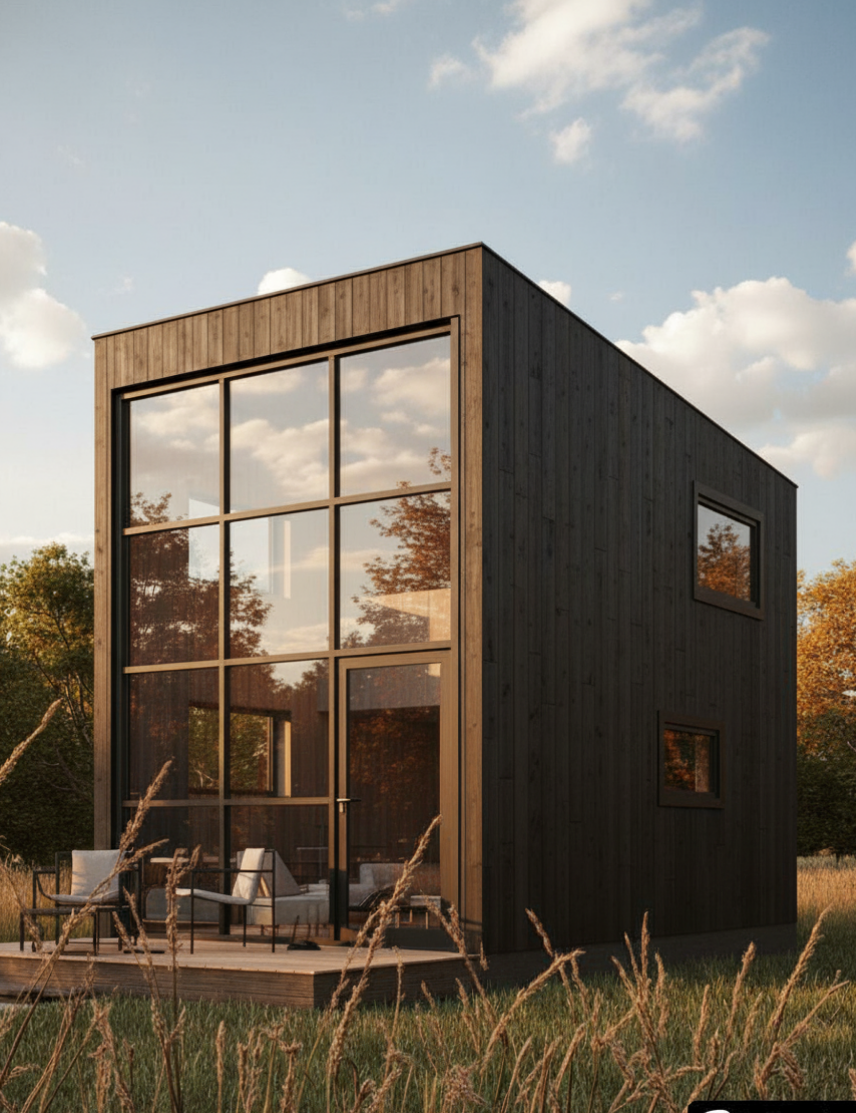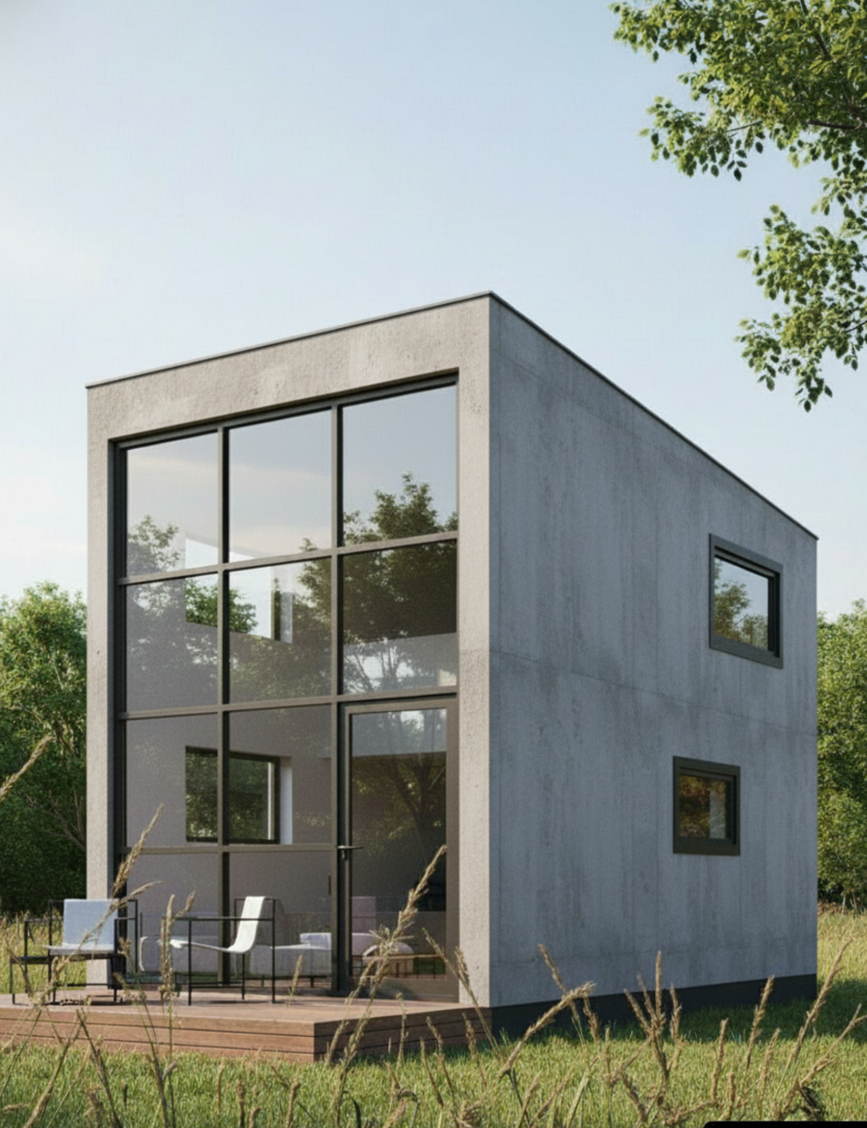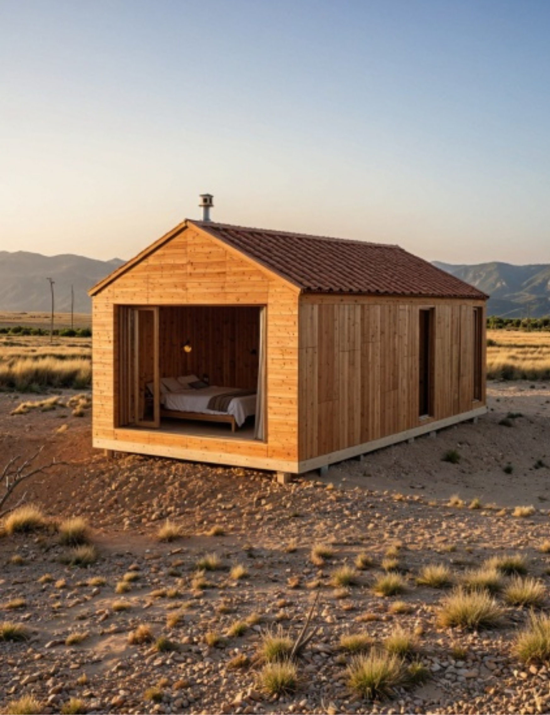 Vivienda completa compacta orientado a vivienda de de fin de semana esporádica, modulo adicional de vivienda principal, casa de invitados y otras opciones de habitabilidad ocasional. También, es una opción adecuada para cuando se prevé aumentar el tamaño de la vivienda con más módulos a futuro.