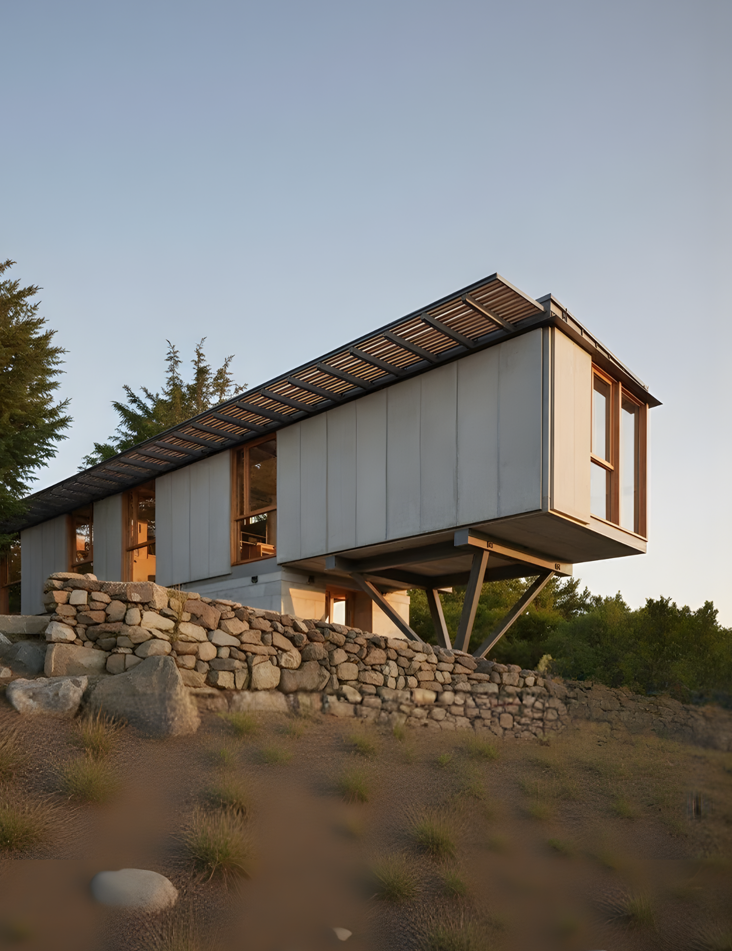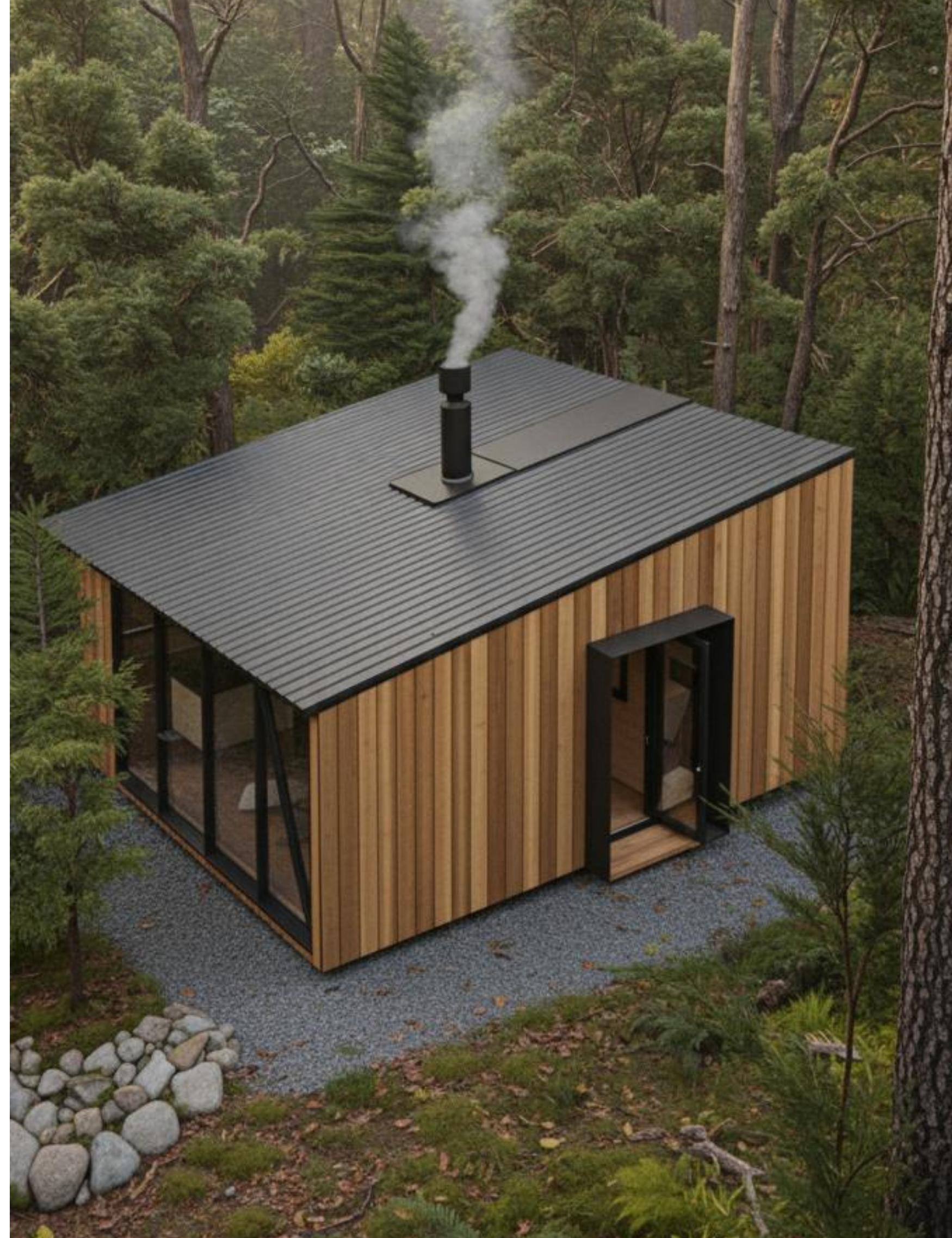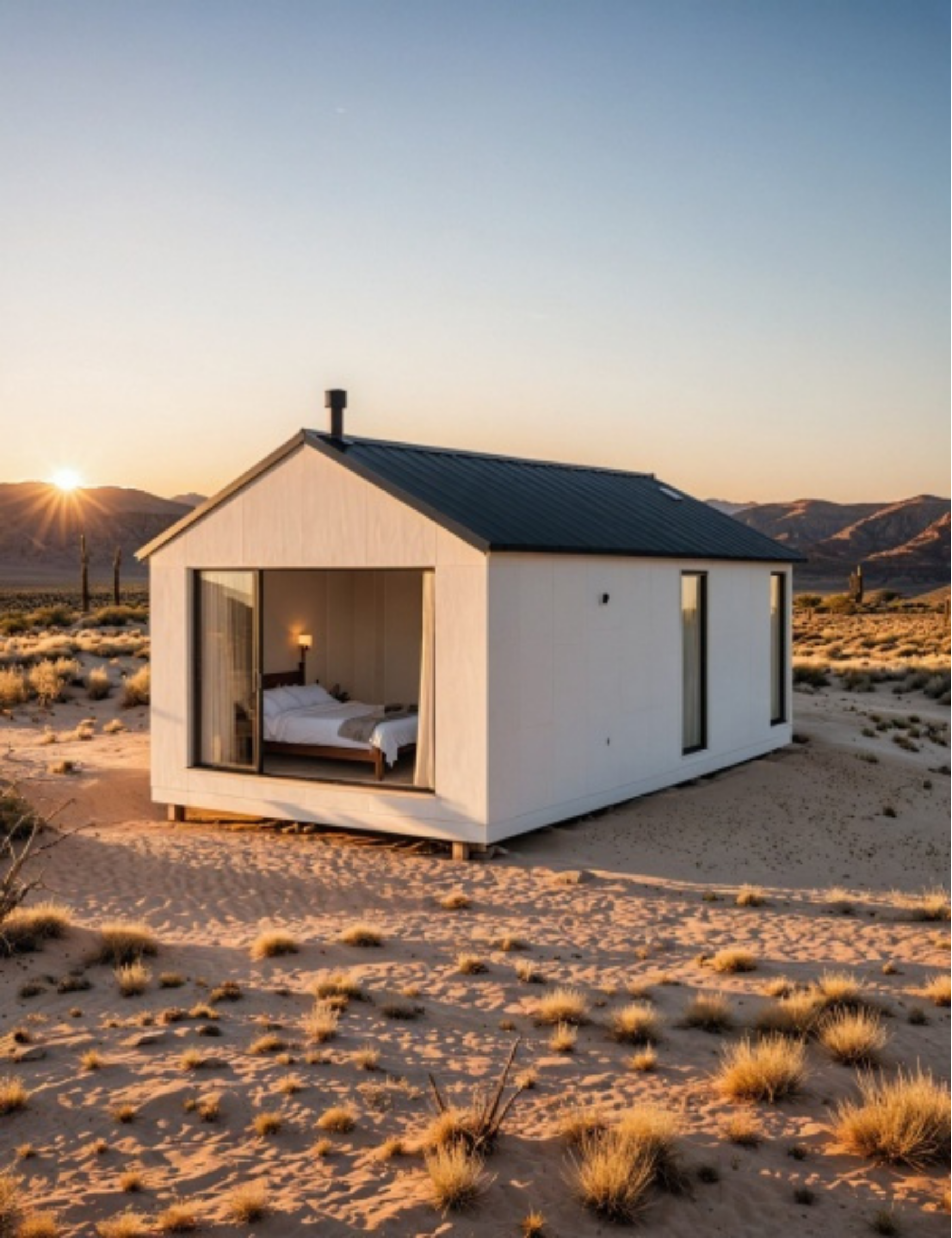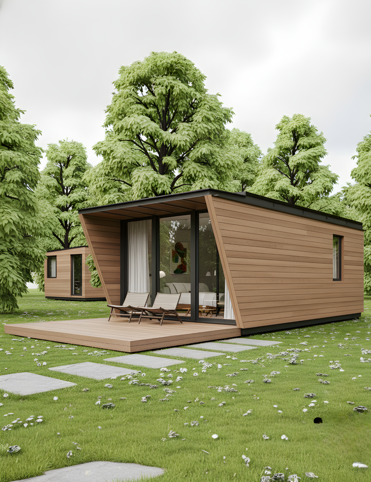 Vivienda completa compacta orientado a vivienda de de fin de semana esporádica, modulo adicional de vivienda principal, casa de invitados y otras opciones de habitabilidad ocasional. También, es una opción adecuada para cuando se prevé aumentar el tamaño de la vivienda con más módulos a futuro.