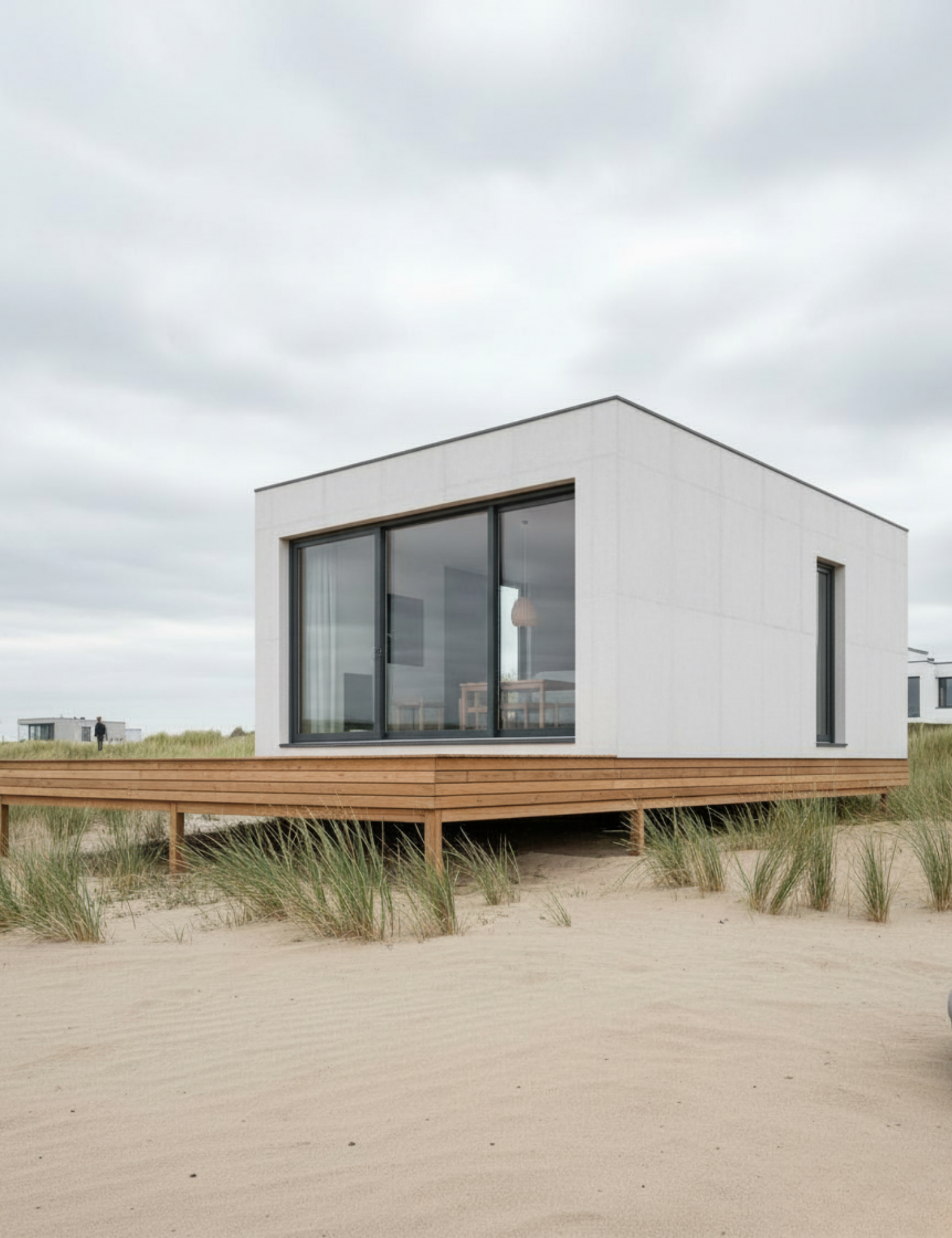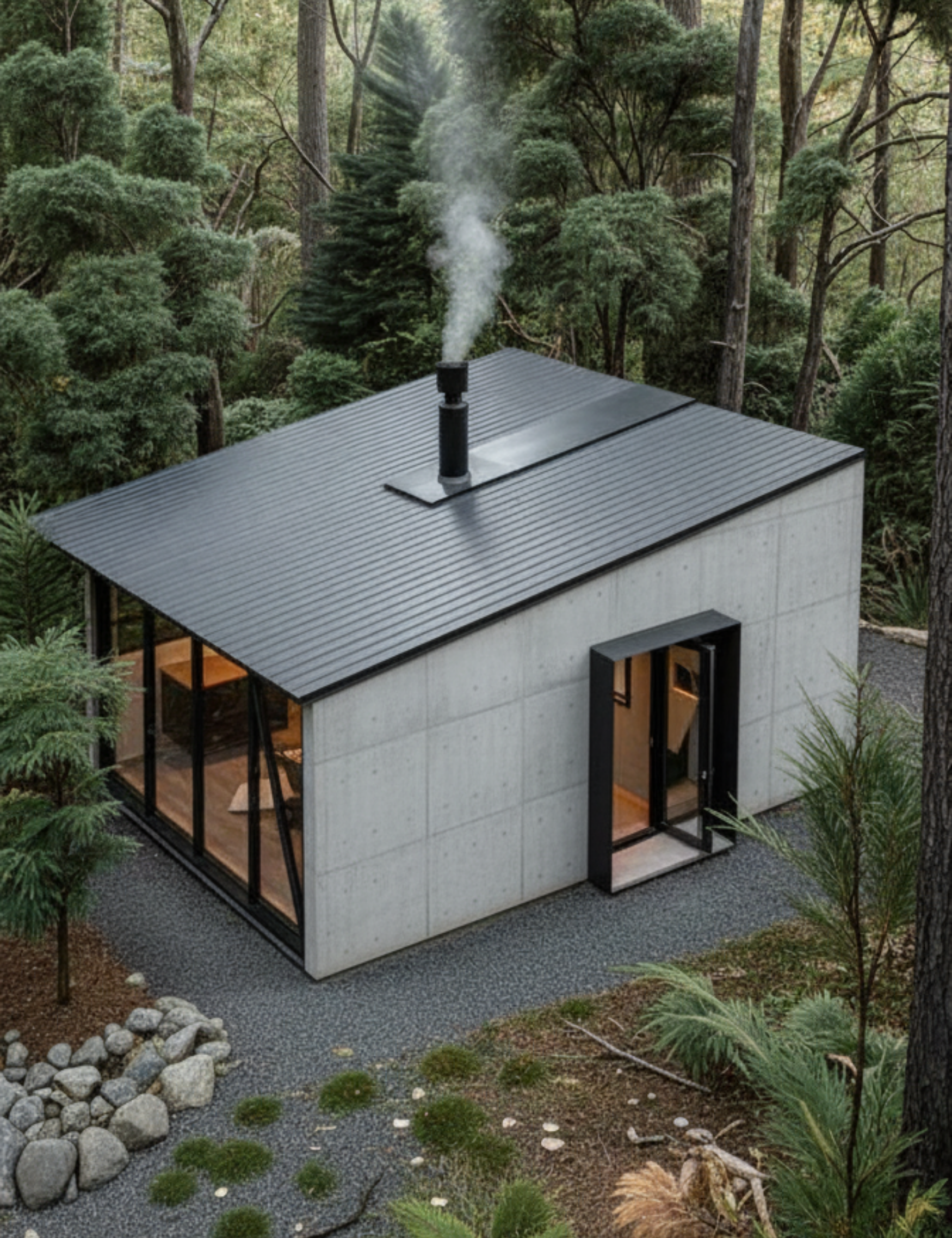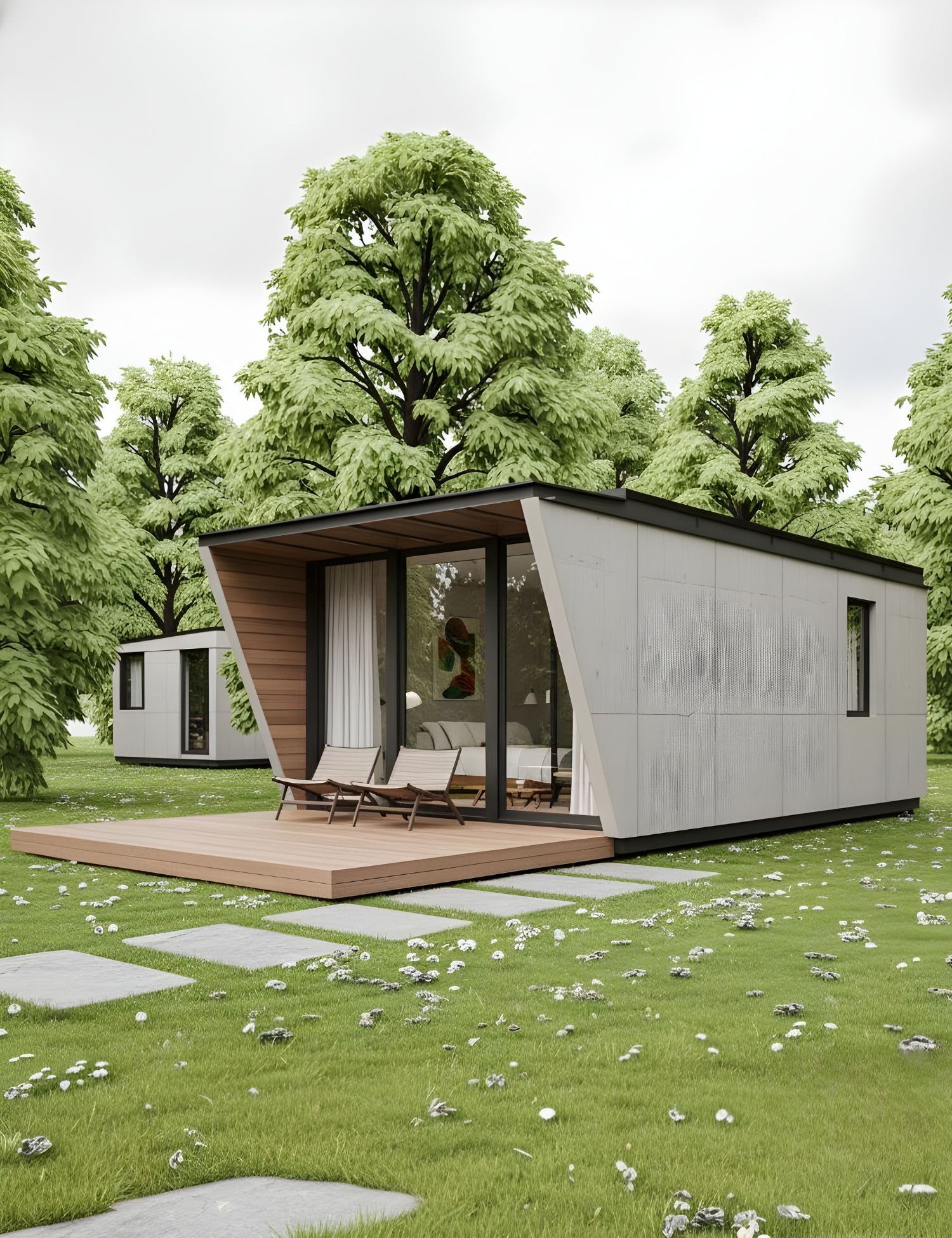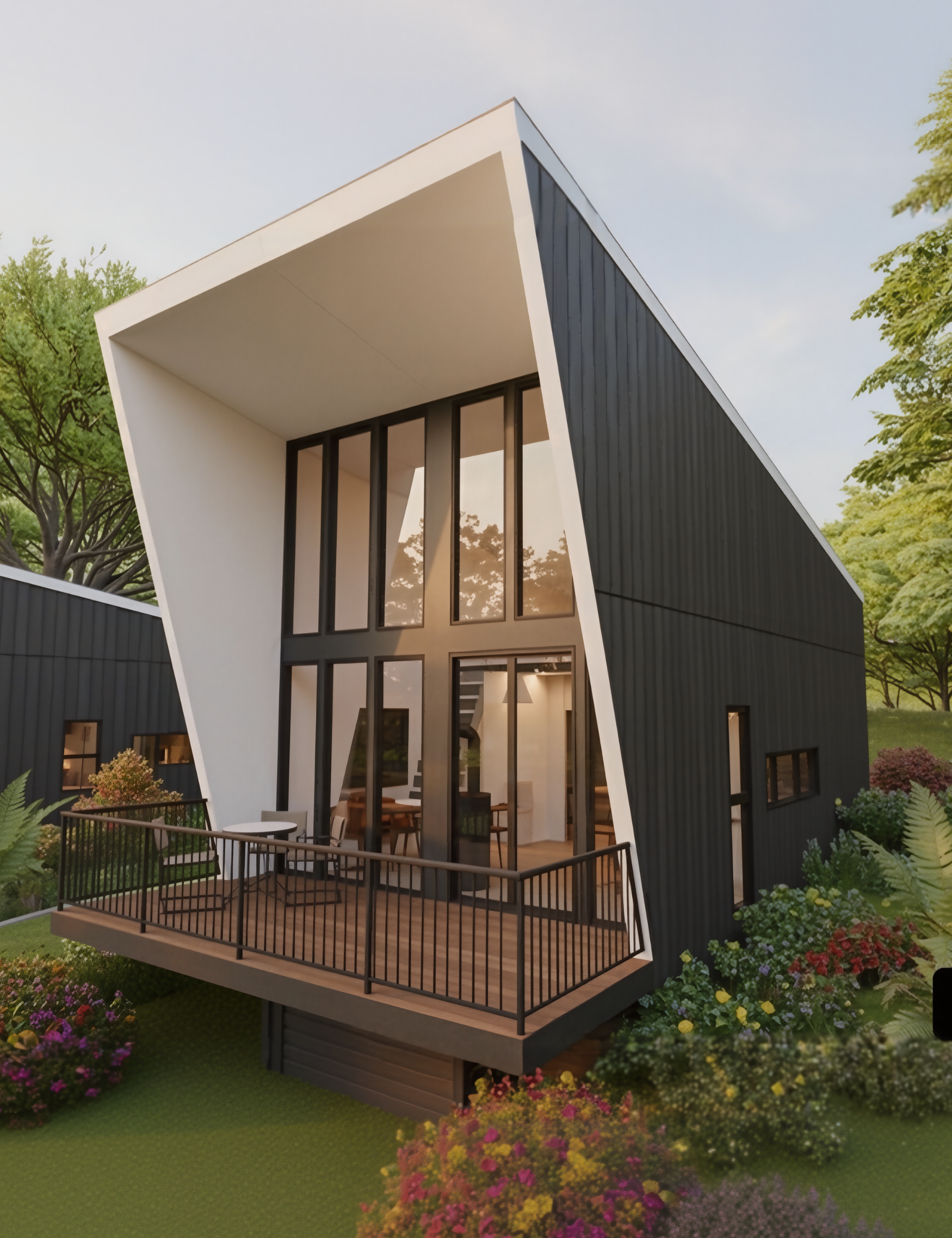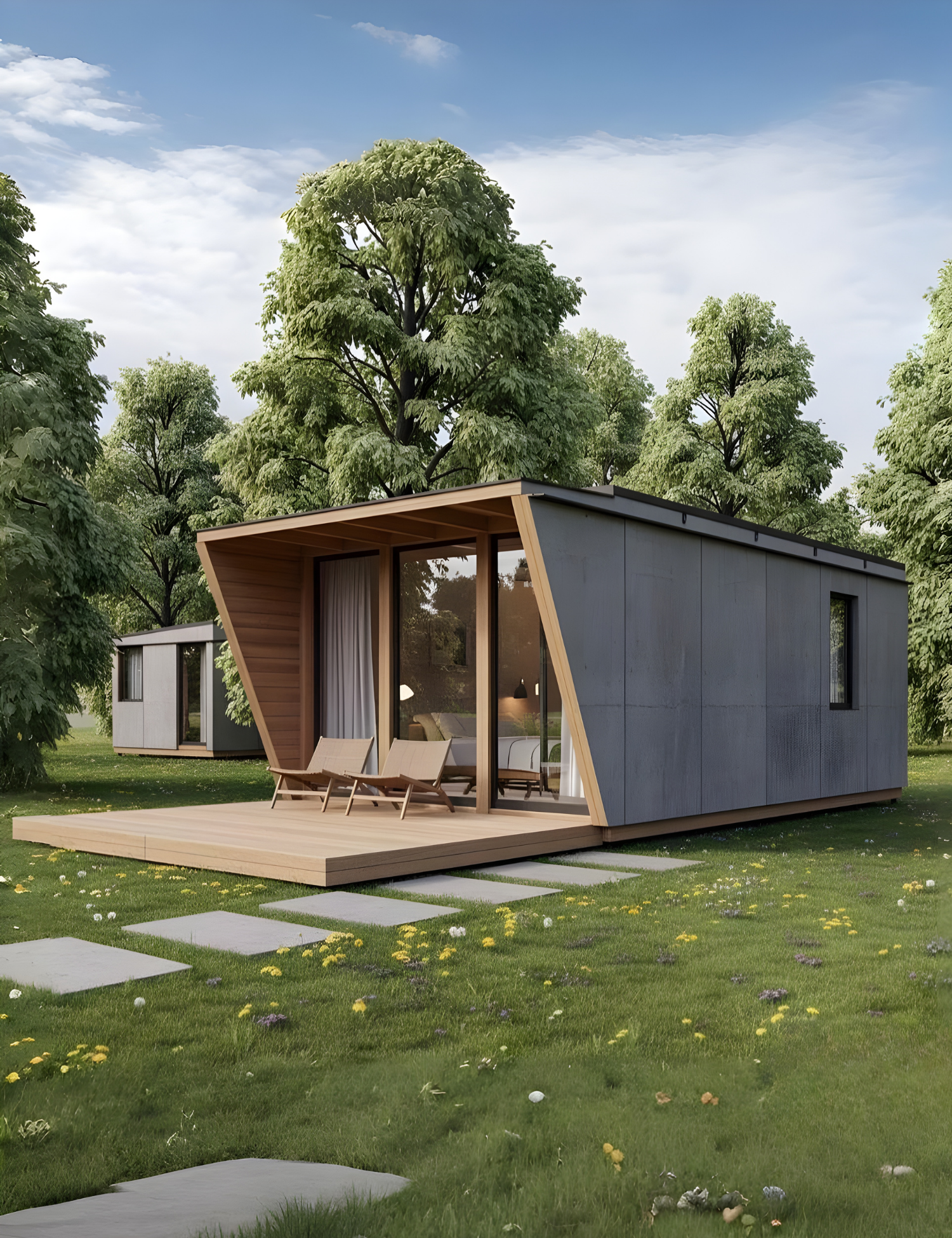 Vivienda completa compacta orientado a vivienda de de fin de semana esporádica, modulo adicional de vivienda principal, casa de invitados y otras opciones de habitabilidad ocasional. También, es una opción adecuada para cuando se prevé aumentar el tamaño de la vivienda con más módulos a futuro.